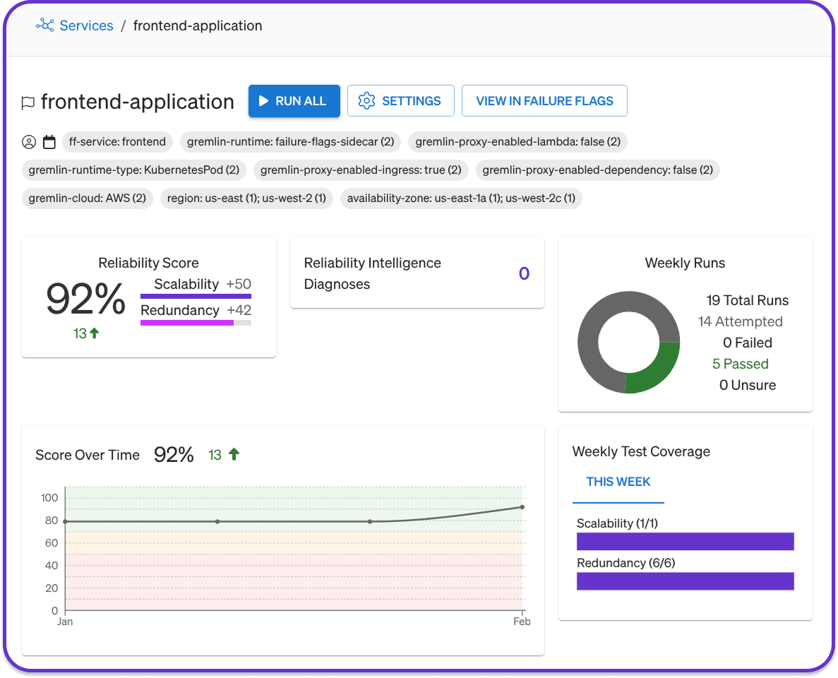 Gremlin safely simulates real failure conditions, giving you accurate, actionable data about how your systems respond, enabling you to make data-driven decisions with a provable impact on system reliability.